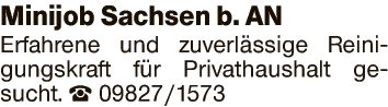 Erfahrene und zuverlässige Reinigungskraft für Privathaushalt gesucht.