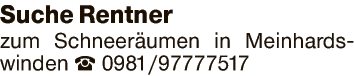 Suche Rentner zum Schneeräumen in Meinhardswinden