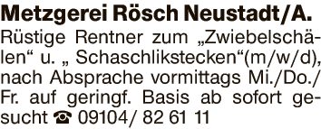 Rüstige Rentner zum „Zwiebelschälen“ u. „ Schaschlikstecken“(m/w/d), nach Absprache vormittags Mi./Do./Fr. auf geringf. Basis ab sofort gesucht.