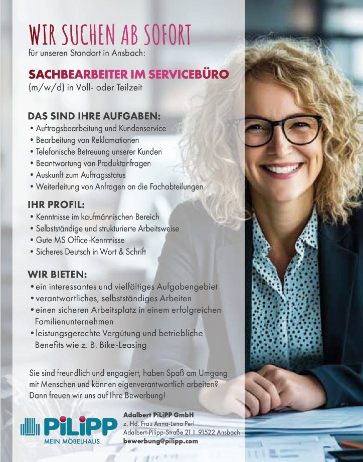 Jetzt Printanzeige ansehenWIR SUCHEN AB SOFORT für unseren Standort in Ansbach: