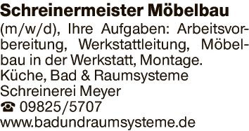 Schreinermeister Möbelbau (m/w/d).