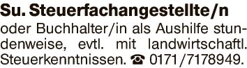 Su. Steuerfachangestellte/n oder Buchhalter/in als Aushilfe stundenweise, evtl. mit landwirtschaftl. Steuerkenntnissen.