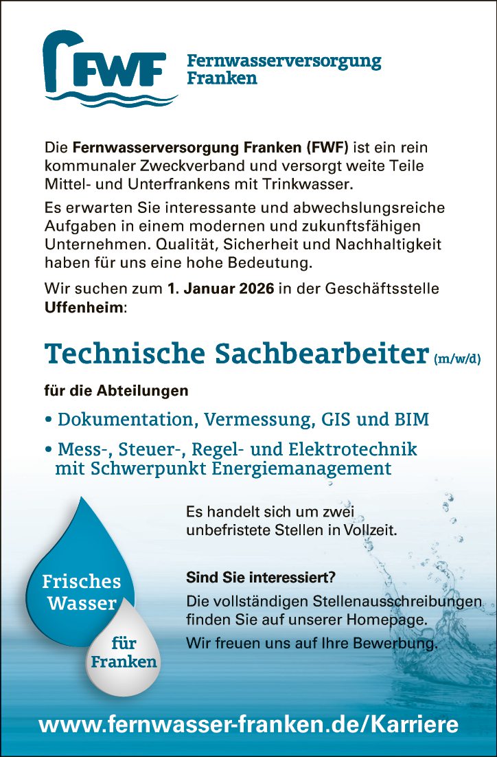 Die Fernwasserversorgung Franken (FWF) ist ein rein kommunaler Zweckverband und versorgt weite Teile Mittel- und Unterfrankens mit Trinkwasser.