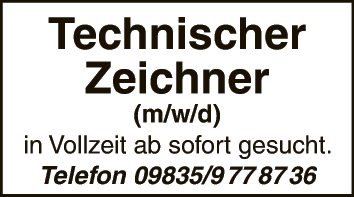 Technischer Zeichner (m/w/d) in Vollzeit ab sofort gesucht.