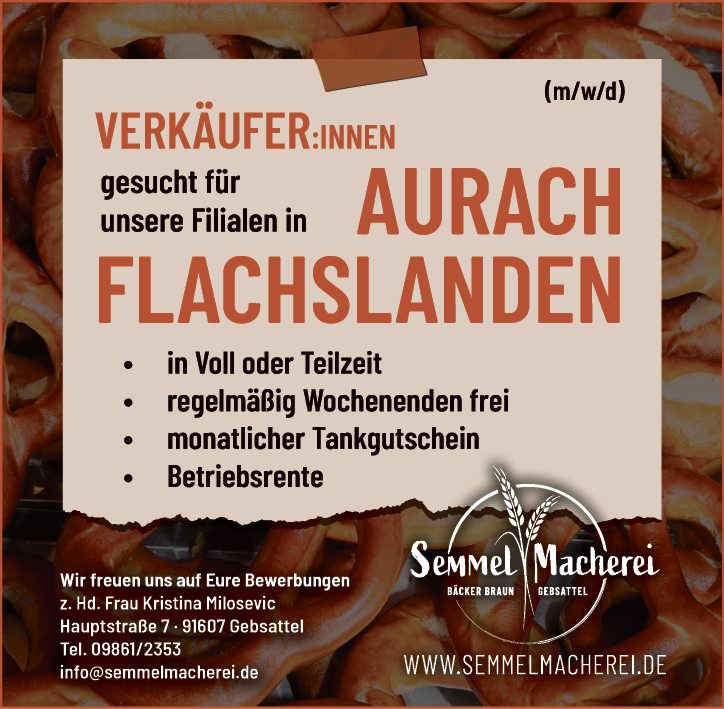 gesucht für unsere Filialen in AURACH - FLACHSLANDEN