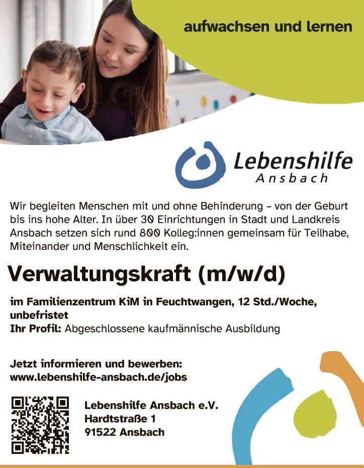 Jetzt informieren und bewerben: www.lebenshilfe-ansbach.de/jobs