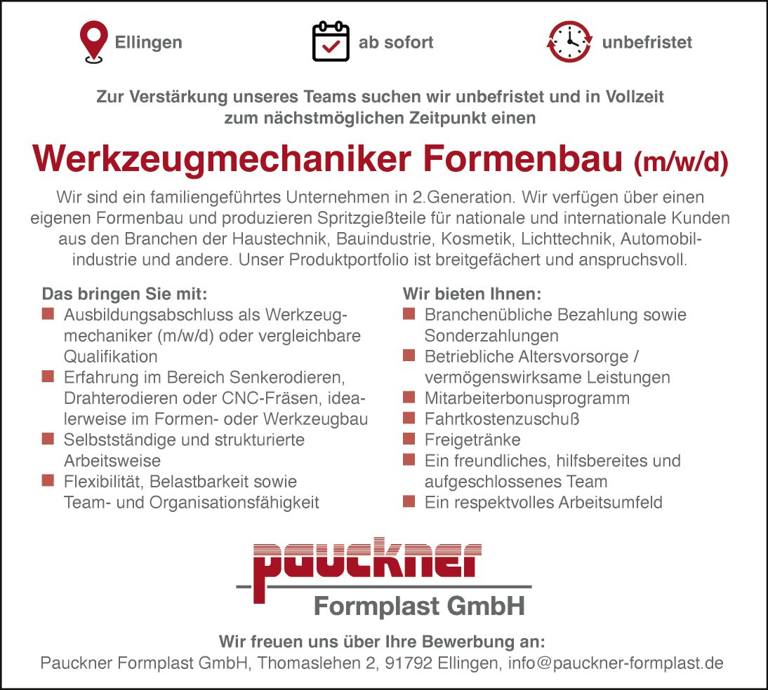 - Ausbildungsabschluss als Werkzeugmechaniker (m/w/d) oder vergleichbare Qualifikation