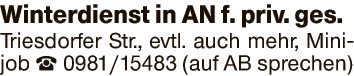 Winterdienst in AN f. priv. ges. Triesdorfer Str., evtl. auch mehr, Minijob.