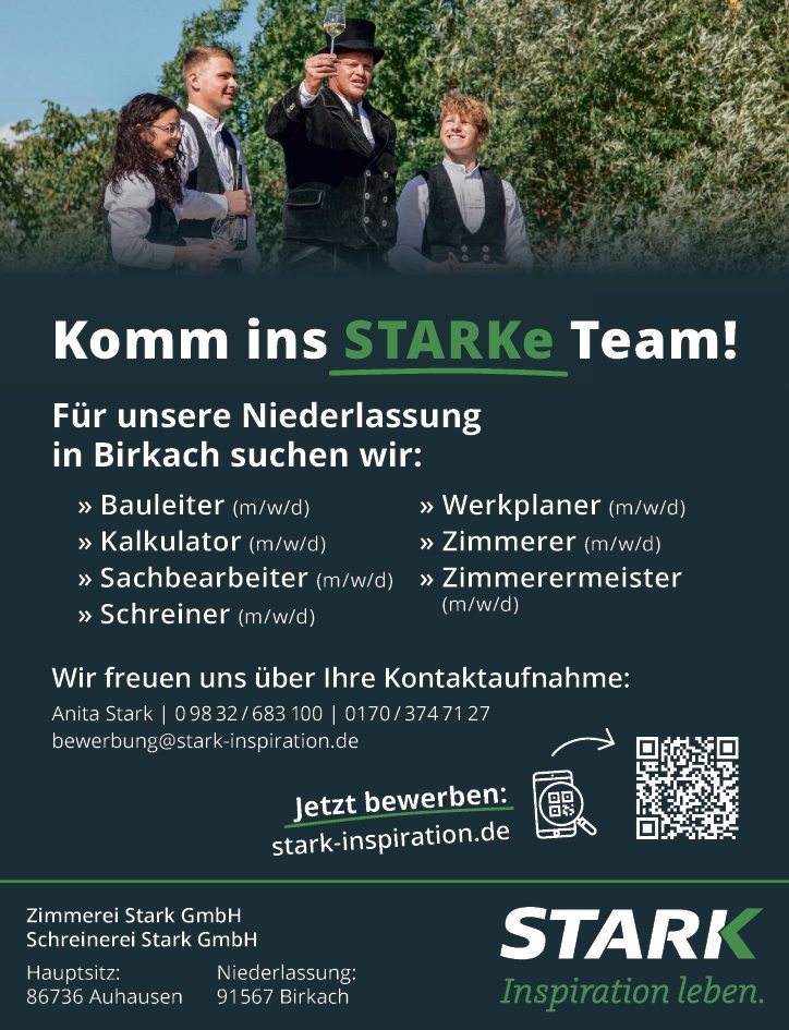 FĂźr unsere Niederlassung in Birkach suchen wir: Zimmerer (m/w/d).